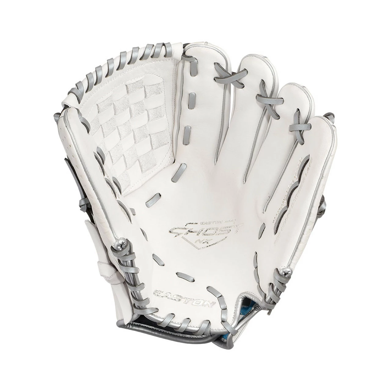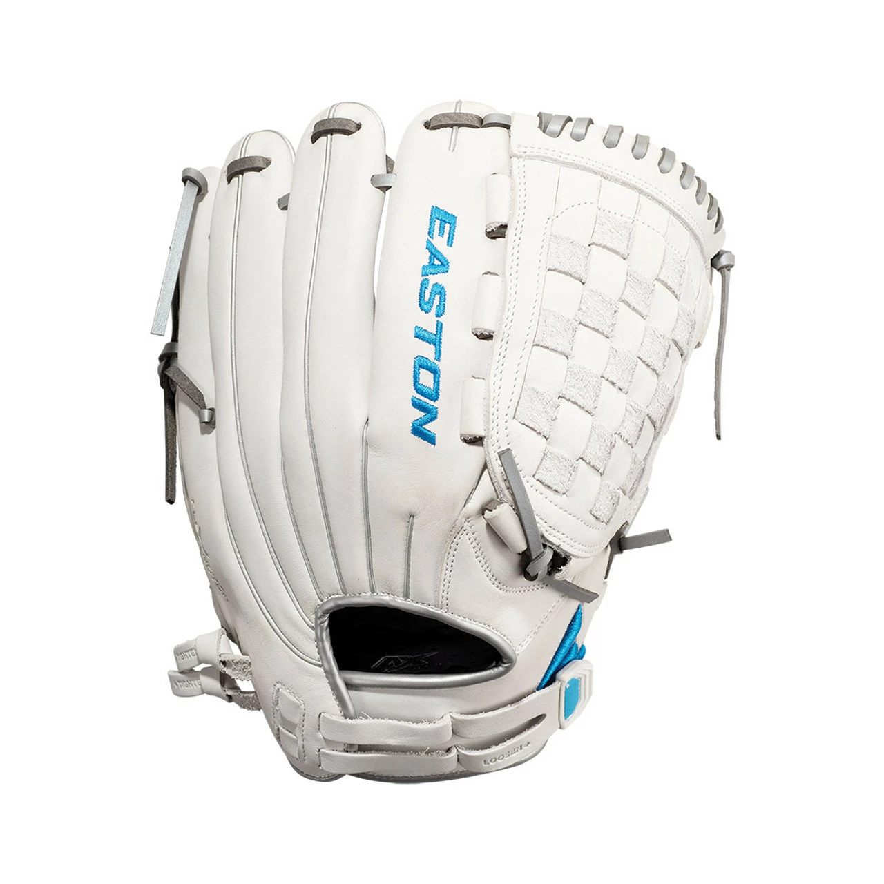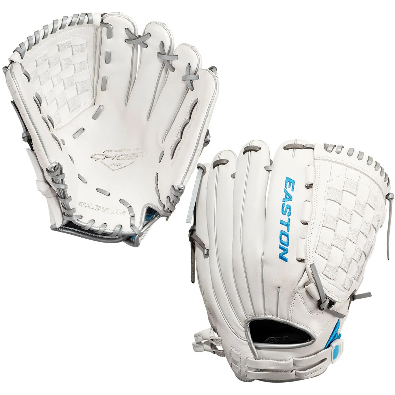 Easton’s Ghost series is a symbol of elite fastpitch play. The Ghost NX 12.5-inch Fastpitch Pitcher/Outfield glove fits right in. These gloves were crafted in gameday-specific patterns designed for smaller hands and perfectly suited to the fastpitch game. On the outside, the Game Ready Diamond Pro Steer leather and Flex Notch closure system make this glove super soft and easy to handle right away. The Quantum Closure System on the glove back ensures a perfect fit for every player, and the interior Ax Suede microfiber lining creates unmatched comfort and durability. Also, the striking white-and-blue colorway and professional-grade silver metallic rawhide lace are sure to turn heads. Hit the field with the Ghost NX 12.5-inch Fastpitch Pitcher/Outfield Glove and master the softball diamond. Get yours today!