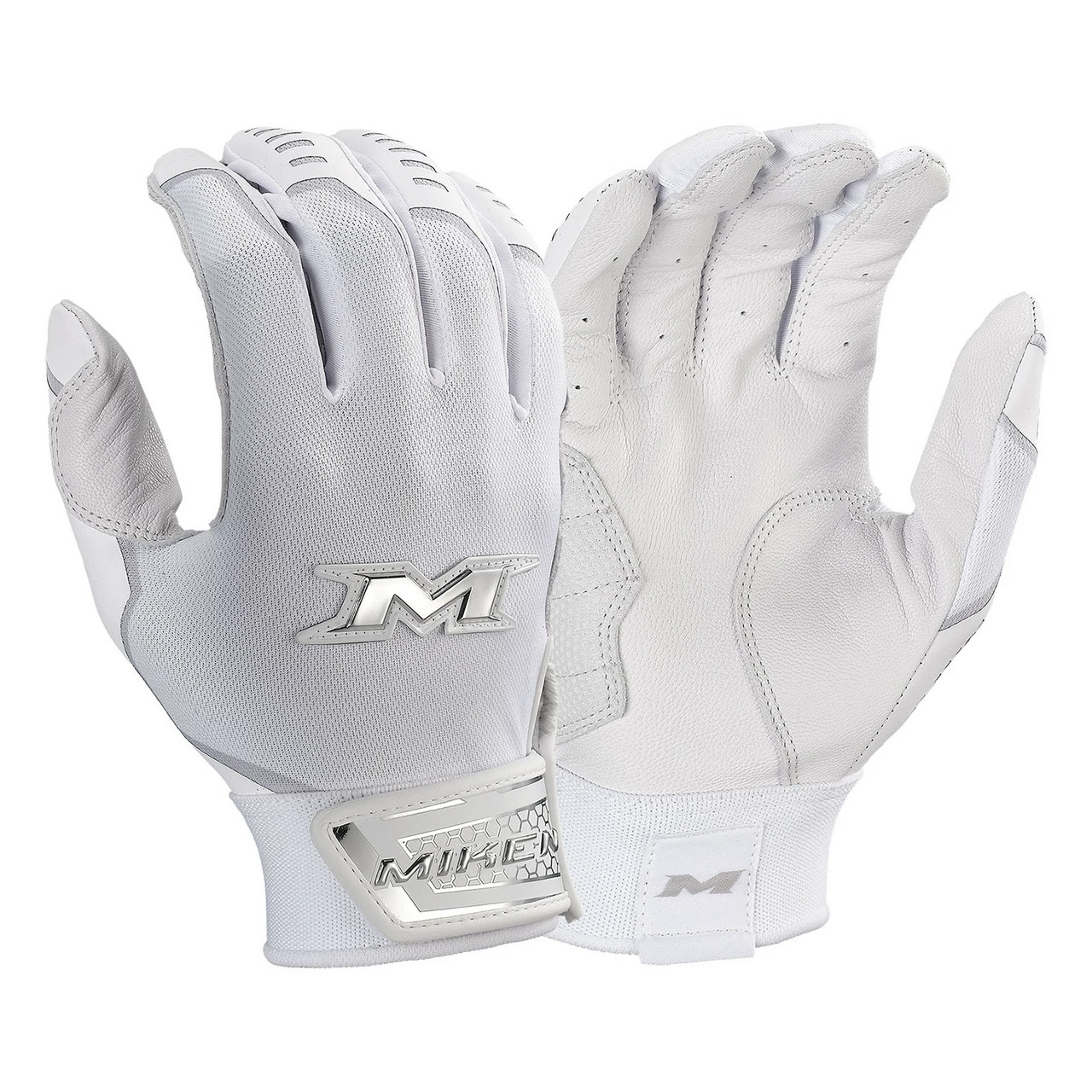 The Miken slowpitch pro batting gloves feature a treated smooth goatskin palm for maximum grip and softness. They’re also equipped with a leather palm pad for added protection and durability. In addition, we’ve added a lightweight, flexible Lycra back for an even greater fit and feel. These batting gloves offer a sleek design with a superior fit, making them perfect for any slowpitch player. Buy your slowpitch pro batting gloves today!