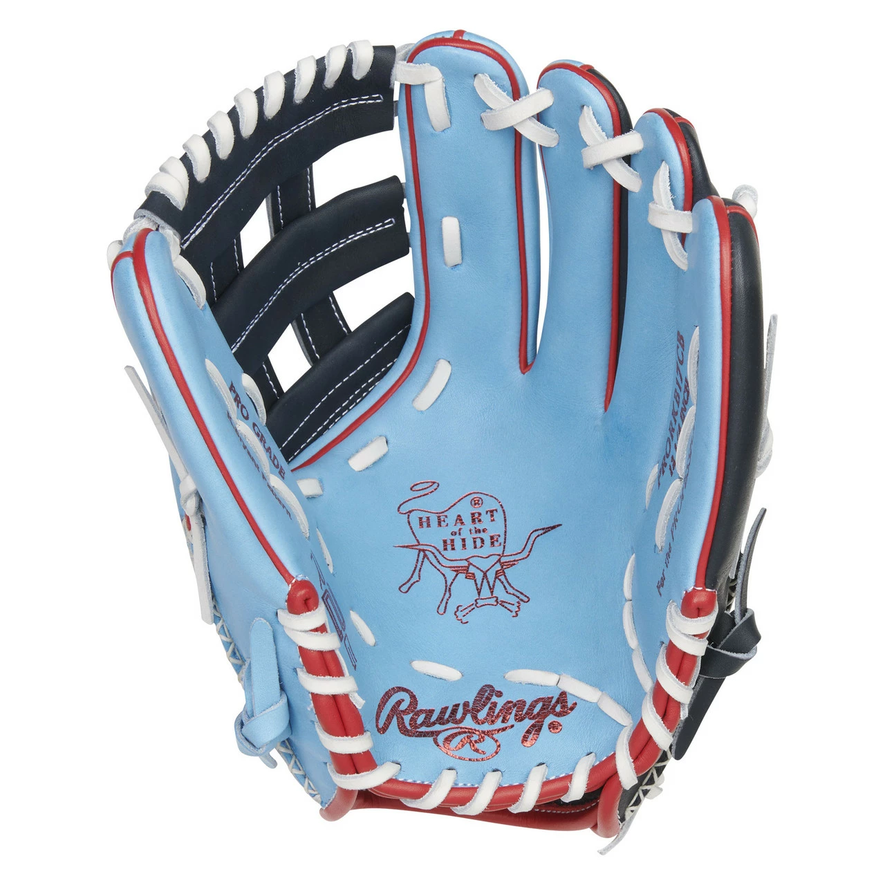 Add some color to your game with the Heart of the Hide R2G ColorSync 6.0 12.25-inch glove! Our designers crafted this gamer from ultra-premium steer-hide leather, and it has the perfect flash of style for any player. Like every R2G glove, it comes with with 25% more factory break-in so it’s ‘game-ready’ out of the box. Also, its interior features the same deer-tanned cowhide lining, padded thumb sleeve, and thermoformed wrist lining that give all Heart of the Hide gloves the superior fit and feel more pros trust. In addition to its interior features, this eye-catching Columbia blue and navy glove was also crafted in a 12.25-inch KB17-pattern, the game day model of superstar Kris Bryant. This pattern is a popular choice for utility players thanks to its deep round pocket that plays equally well in the infield or outfield. As a result, this ColorSync 6.0 glove offers the perfect combination of style and performance, and it will last you for years to come. This limited edition Heart of the Hide R2G ColorSync 6.0 12.25-inch glove won’t last forever, so order yours now – before it’s gone for good!