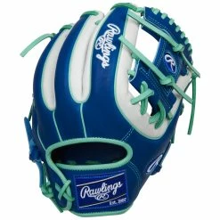 Meticulously crafted from ultra-premium steer-hide leather, the 2022 Heart of the Hide R2G 11.5-inch I-web glove offers superior quality and performance. We’ve constructed all of our HOH R2G gloves with an additional 25% break-in too, so they’re ready-to-go out of the box! As a result, you get the same renowned feel and durability expected from any HOH glove – with a more game-ready feel. In addition, this R2G infield glove features steer-hide palm lining, a thermoformed wrist strap, and a padded thumb sleeve for optimal comfort and feel. This Heart of the Hide R2G glove also has a narrow fit and a redesigned heel pad too! These features combine to give you a better fit and an easier close. We’ve built this 11.5-inch infield glove in our popular 31-pattern with a Pro I-web, which is a great combination for infielders thanks to its large pocket, and extreme versatility. To top it off, the mint laces provide the perfect touch of flash to its royal/white design. When you first put this 2022 Heart of the Hide R2G 11.5-inch I-web glove on, you’ll know right away you found your next gamer. Become the next defensive great, and join the brand more pros trust than any other. Order yours now!