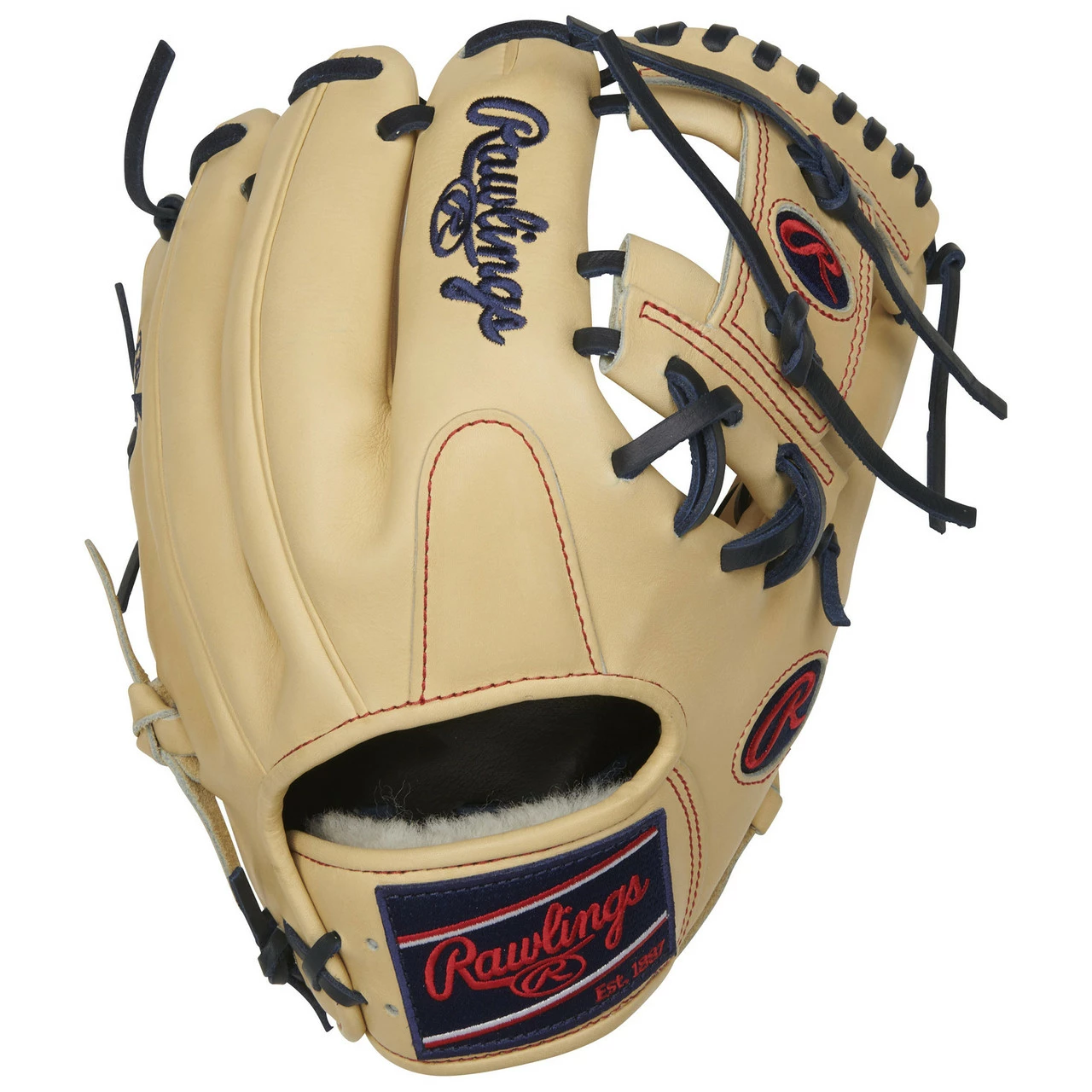 More pros trust Rawlings gloves than all other brands combined. The 2021 Pro Preferred 11.5-inch I-web glove is a true testament to our quality and craftsmanship commitment. Our flawless, full-grain kip leather offers an unparalleled feel, and performance you can’t find anywhere else. It was meticulously crafted using our pro 200-pattern and I-web, a popular choice among the game’s top pros. This is due to these pattern’s large pocket and extreme versatility. In addition, all our Pro Preferred gloves feature Pittards sheepskin palm lining, which provides optimal comfort and wicks away moisture. As a result, your hands stay dry in any playing conditions. For additional comfort, its wool wrist strap promotes lasting comfort to the back of your hand, and our internal wool padding allows you to form the perfect pocket. You’ll get maximum comfort and control every time you put on this classic camel glove. It even comes with the perfect splash of color thanks to it’s navy lacing and matching Rawlings patch and ‘Oval-R.’ When you take it out of the box, you’ll know right away you’ve found your next gamer. Order yours now!